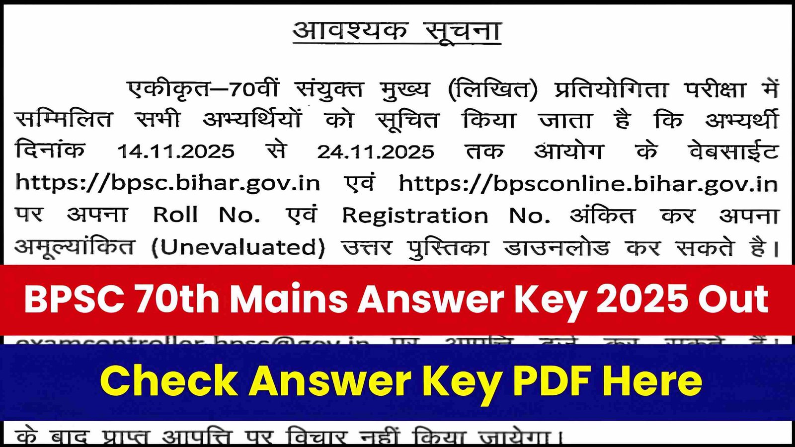 BPSC 70th Mains Answer Key 2025 Out, Check Answer Key PDF & Steps to Download